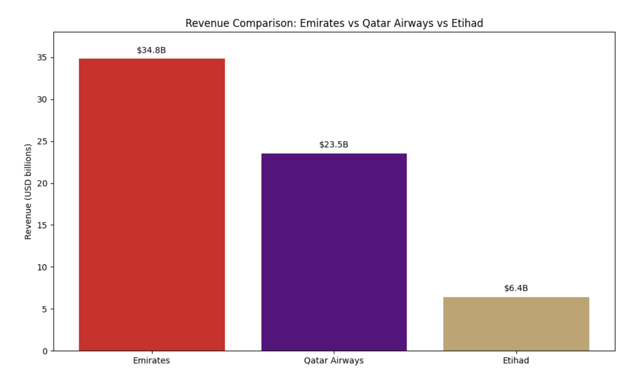 Emirates, the region’s dominant airline, was generating $25–30 billion in annual revenue throughout the late 2010s and remained profitable in most years before the pandemic. Qatar Airways, meanwhile, had built a network nearly as global as Emirates and regularly reported revenues around $13–15 billion, positioning itself firmly between the giant in Dubai and the much smaller Etihad.